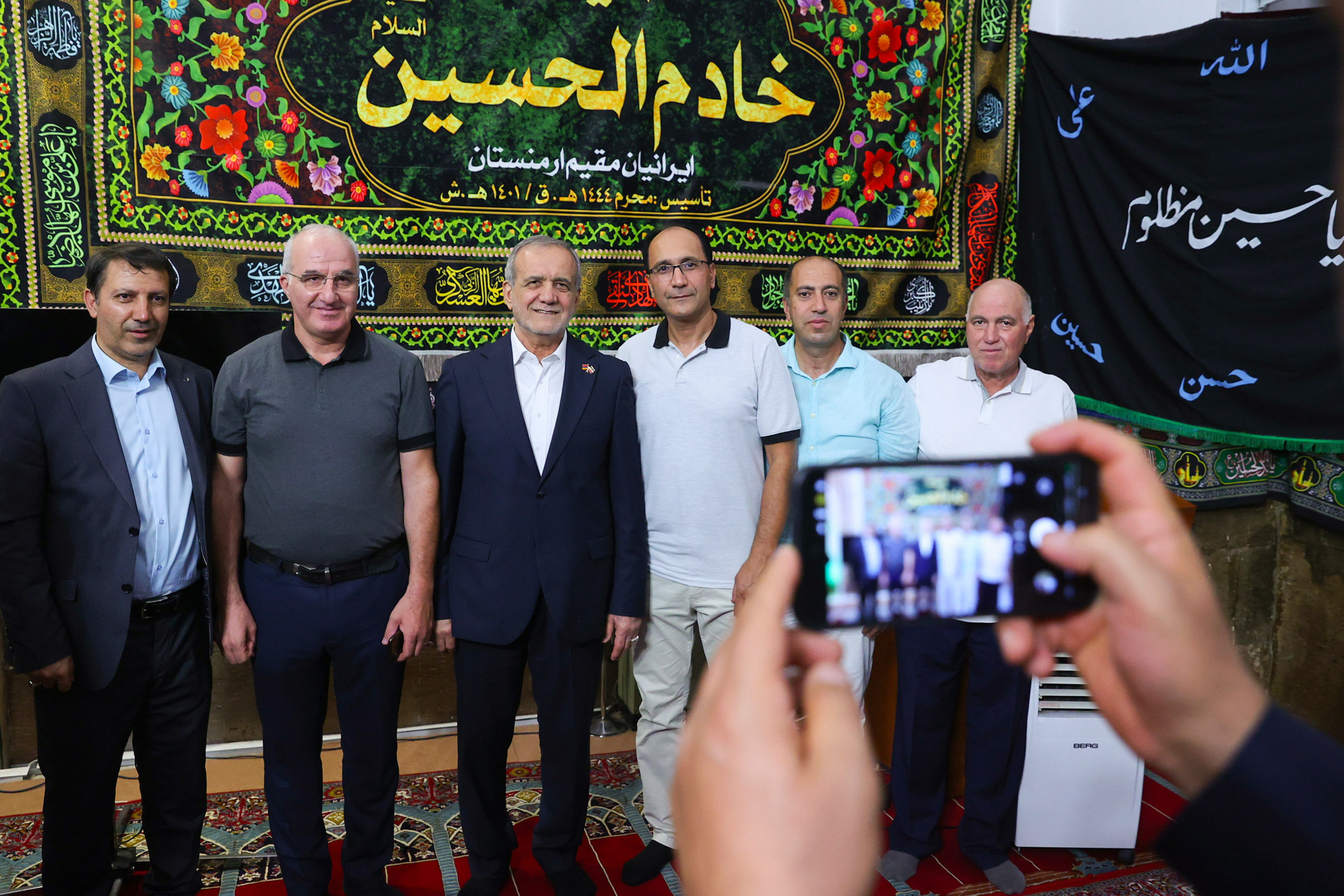 دکتر «مسعود پزشکیان» رییس جمهوری اسلامی ایران، شامگاه دیروز دوشنبه 27 مرداد 1404، در جریان سفر به ارمنستان، با حضور در محل مسجد کبود ایروان، ضمن بازدید از بخشهای مختلف این مسجد، همراه با نمازگزاران، نماز مغرب و عشاء خود را اقامه کرد.